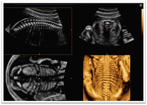 三维/四维超声作为临床超声诊断新技术,经过不断改进更新,使图像清晰、立体、逼真,提供的三维空间信息可弥补二维超声的不足,使超声诊断准确率明显提高。而实时三维超声能够清晰显示胎儿在宫内的各种姿势和动作, 如胎儿的手势、吞咽、打哈欠、 肢体运动等,图像质量不受胎儿运动的影响。