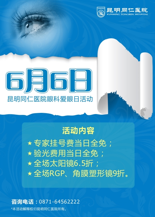 活动期间(6月6日),将由眼科资深专家为您做眼部健康检测,具体优惠如下: