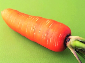 挑选红萝卜,以色鲜、质细、水分足、形粗壮、表皮光滑、形状整齐、心柱小、无裂口和病虫害为佳。如果碰到口感粗糙、缺少香甜气味的,很可能是已经开花的老萝卜。如果红萝卜顶端与叶子连接的地方中间有一条长花的梗,就是老萝卜了,即使削掉了也有一个明显的“圆圈”。