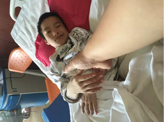 蔡飞望脚上正在输液,蜷缩在被褥下的腿由于肌肉萎缩,加之本身又瘦弱,几乎看不到。十五岁的孩子,感觉跟十岁的孩子差不多大。看得出来,他是个坚强的孩子,总是微笑地看着妈妈,用眼神安慰着妈妈,仿佛在说:我会好起来的。