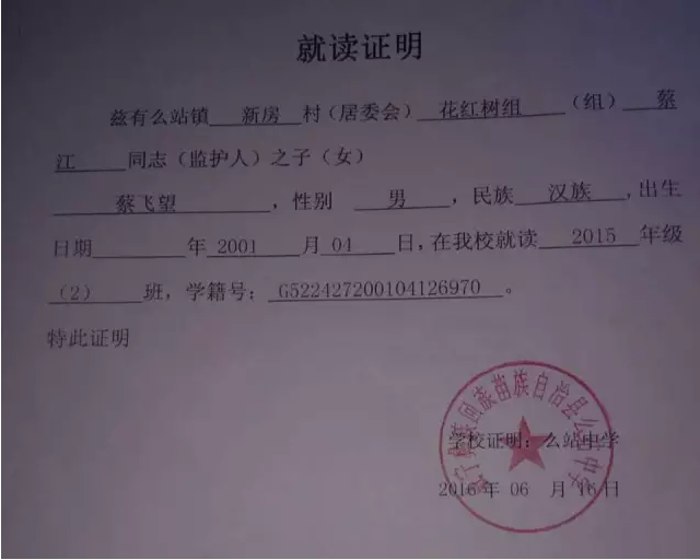 蔡飞望是家中的长子,刚上了初一,他做完了作业,想着可以帮父母做点农活,就上了自家二楼拿了些苞谷打算去喂喂猪。正准备下楼,被脚下的谷粒一滑,不慎失足踩空,由二楼平台上跌下,被院子的晾衣绳勒到脖子,随即跌落地上昏迷不醒。家里十一岁的弟弟见到此景,急忙帮他解开颈部绳索,飞望渐渐有了呼吸。此时飞望已勒晕约2分钟了。