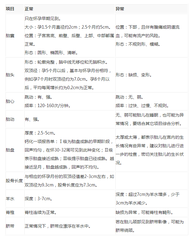 很多孕妈妈拿到B超后都一脸茫然,非常想知道到底检测出了一些什么,下面就通过这个表来了解一下B超单吧