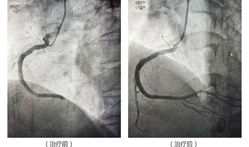 心内科立即组织抢救,介入小组迅速反应,谈伍平医生(副主任医师),范春林医师,陈家丽护师配合默契,在90分钟内完成了冠脉造影,球囊扩张+支架植入,又一个患者的心脏保治疗成功完成。