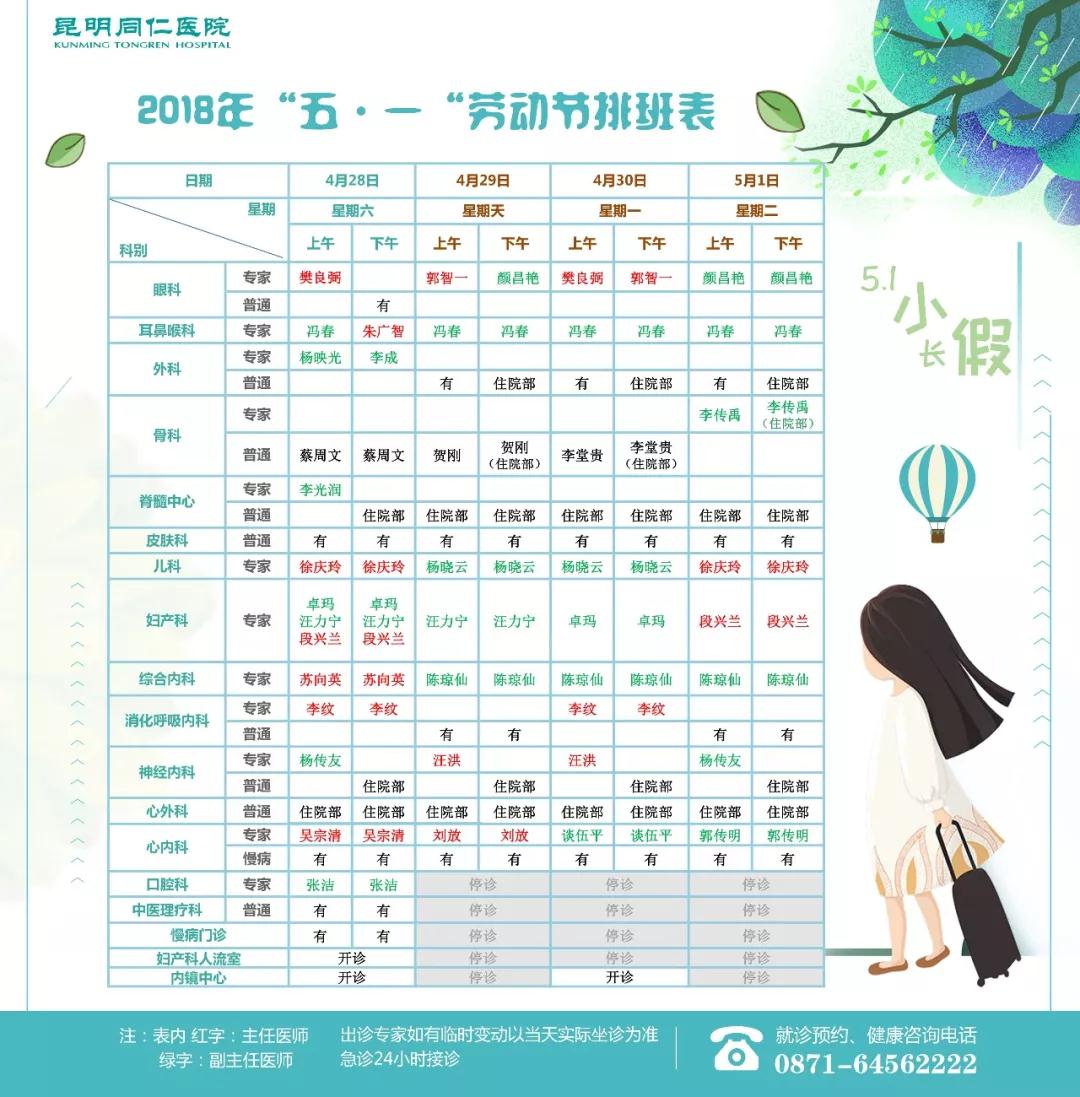 “五一”劳动节期间的门诊排班表啦!