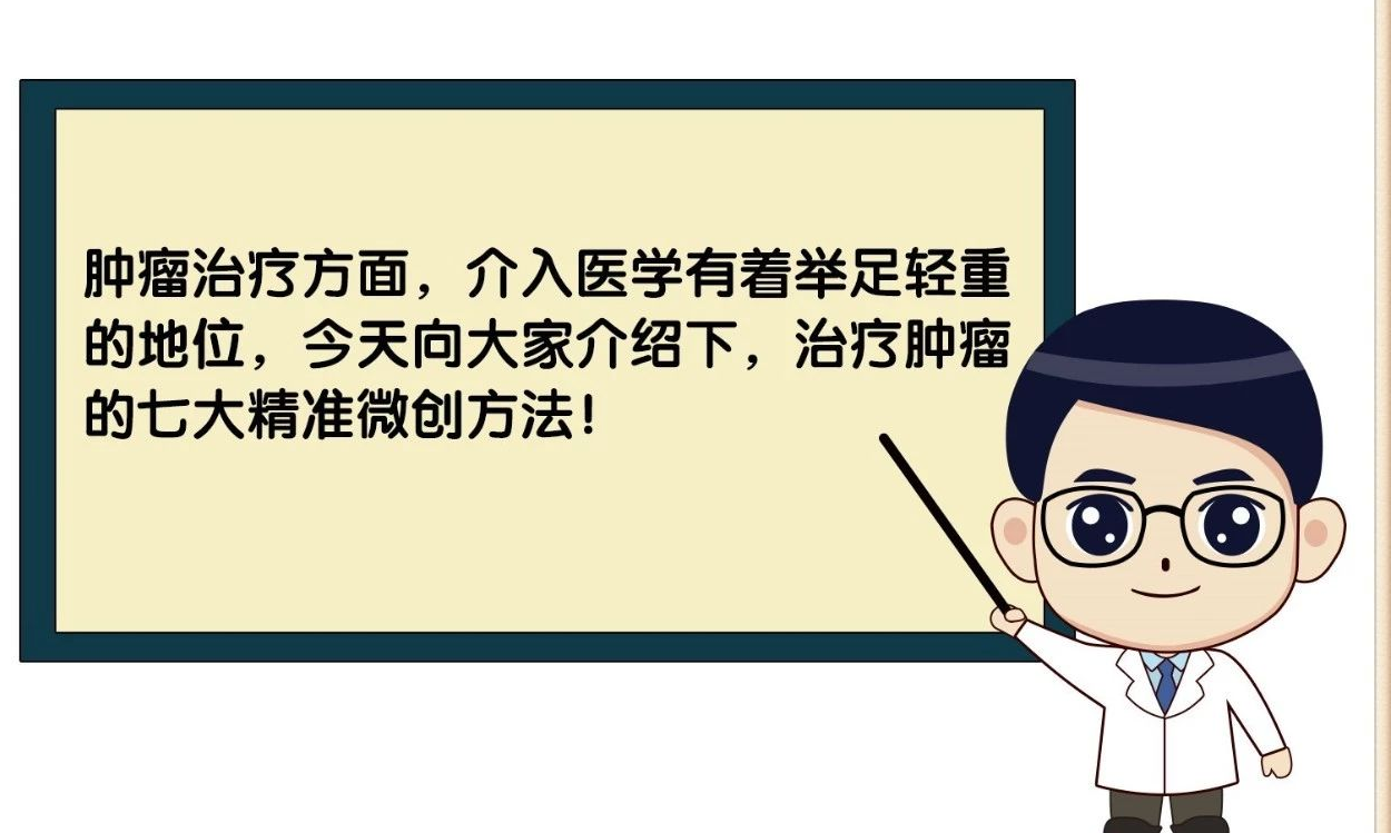 6.微创介入治疗:是在医学影像设备,比如X线、CT、B超等的引导下,用穿刺针、导丝、导管等器材到达病变部位进行诊断或治疗的方法。肿瘤介入治疗可大致分为血管介入治疗和非血管介入治疗。肿瘤介入治疗因其微创、可视引导、可重复操作、多种技术手段联合应用等优势,而具有创伤小、效果好、费用低的特点,已经越来越多地应用于肿瘤诊疗,很好地解决了以往药物和手术不能解决的出血、腔道狭窄及梗阻、食管或气管瘘、腔静脉压迫及其他多种肿瘤相关并发症。但是介入治疗有严格的适应症,对操作医生提出了更高的影像、临床技能要求,必须是经过严格的专业培训的医生才能为患者进行操作。