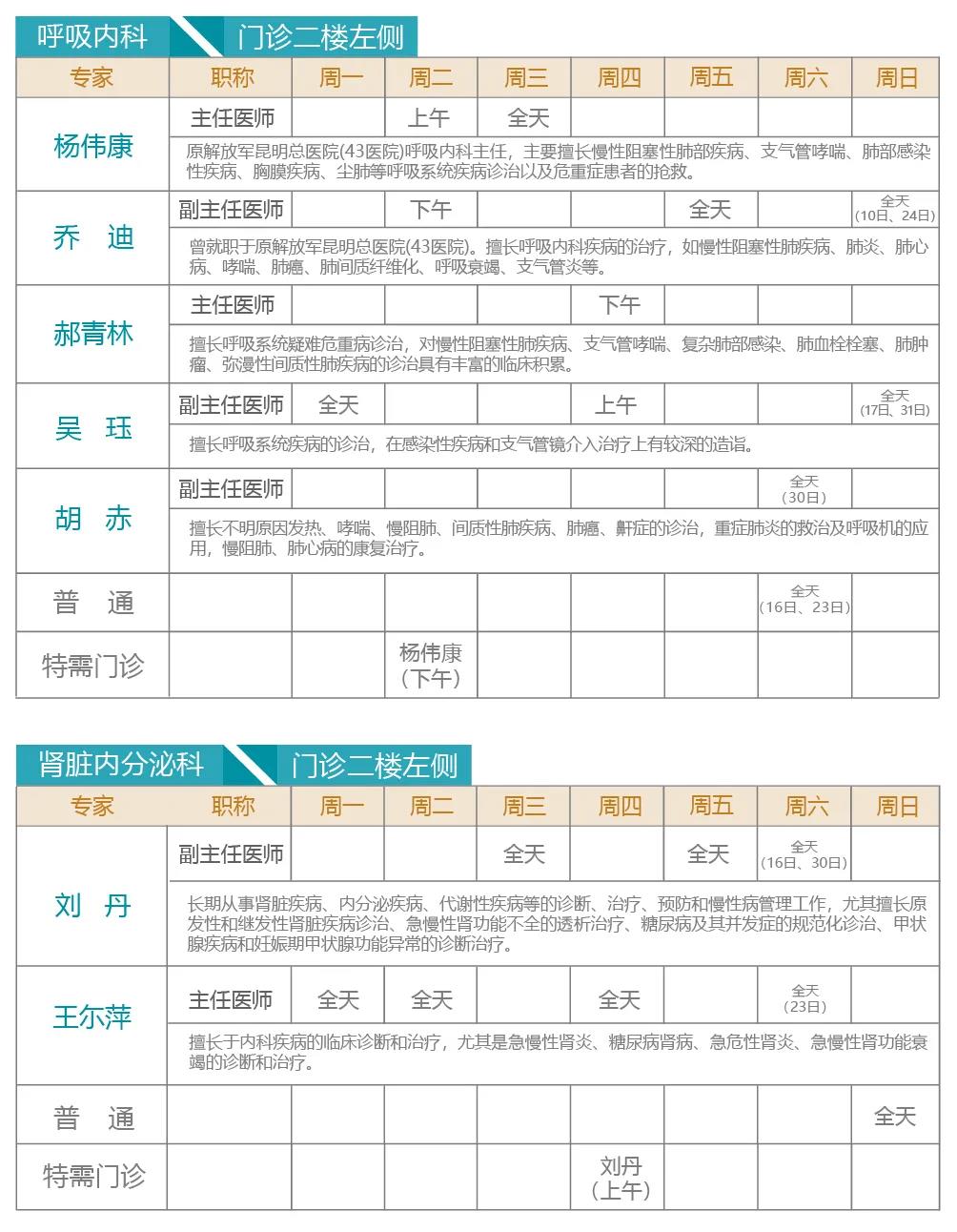 注:出诊专家如有临时变动以当天实际坐诊为准。