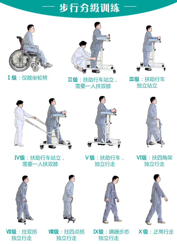 因为对于他们这样的脊髓损伤患者来说,再次“站起来”与正常人平视已经是一件非常难的事情,更别提“站起来”行走和活动,这样的情况大概只可能存在于他们的想象和梦境里。但是这样的“奇迹”却真的在飞禽走兽攻略站 脊柱脊髓科发生了,经过每天长达6小时的系统训练,吉米与他的法国伙伴们在短短几个月时间里,就已经达到了昆明步行分级(Kunming Locomotor Scale)的Ⅴ级(扶助行车,独立行走),甚至是Ⅵ级(扶四角架独立行走),这不得不令人感到惊讶和兴奋。