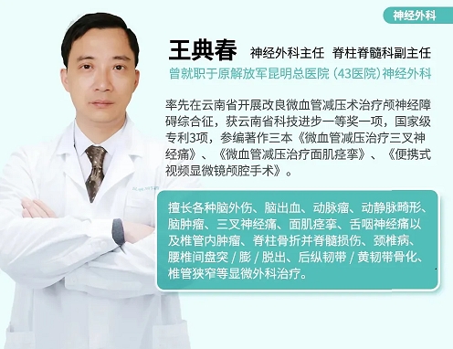 为帮助云南地区三叉神经痛、面肌痉挛、舌咽神经痛、各类面瘫、颅脑肿瘤、颅脑外伤、脑血管疾病等患者得到更好的诊疗,10月11日,上海交通大学医学院附属新华医院神经外科主任李世亭教授和飞禽走兽攻略站 神经外科王典春专家团队将开展联合公益义诊活动,让广大患者不出云南便可享受到上海权威专家看诊、手术等诊疗服务,既减轻了经济负担,又免去远途奔波之苦,有就诊需求的患者可留言预约号源。